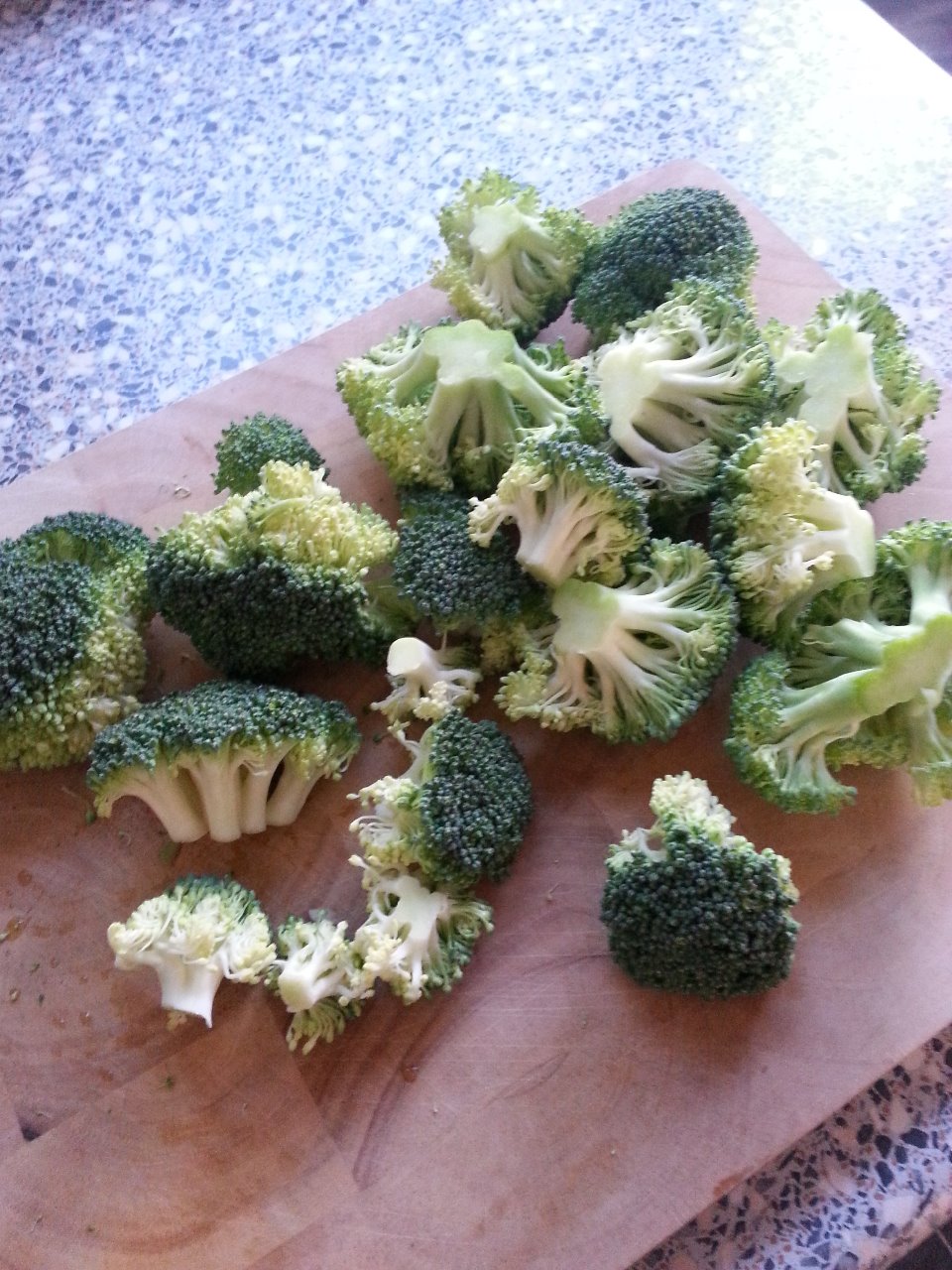 Snijd de broccoli in roosjes en de stam in plakken. We gebruiken dus de gehele broccoli, er wordt niks weggegooid.